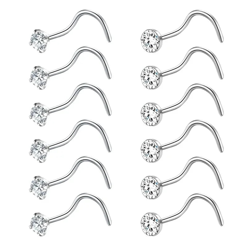 12PCS Stainless Steel Crystal Nose Studs & Rings for Women