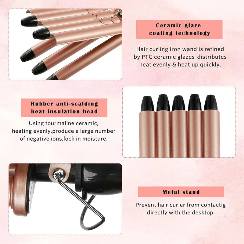 3-in-1 Reversible Triple Barrel Hair Waver – Deep & Small Wave Curling Iron