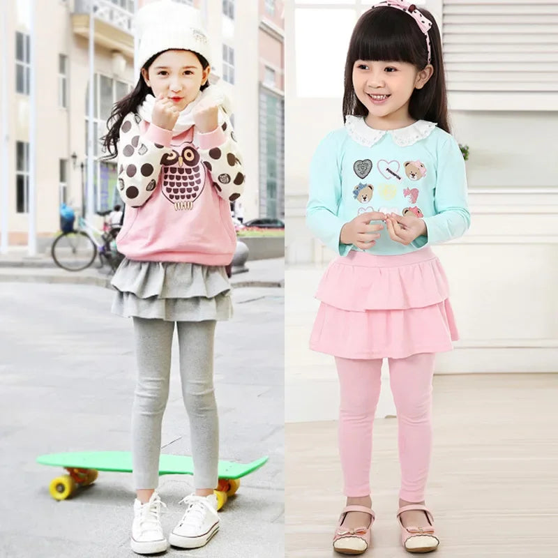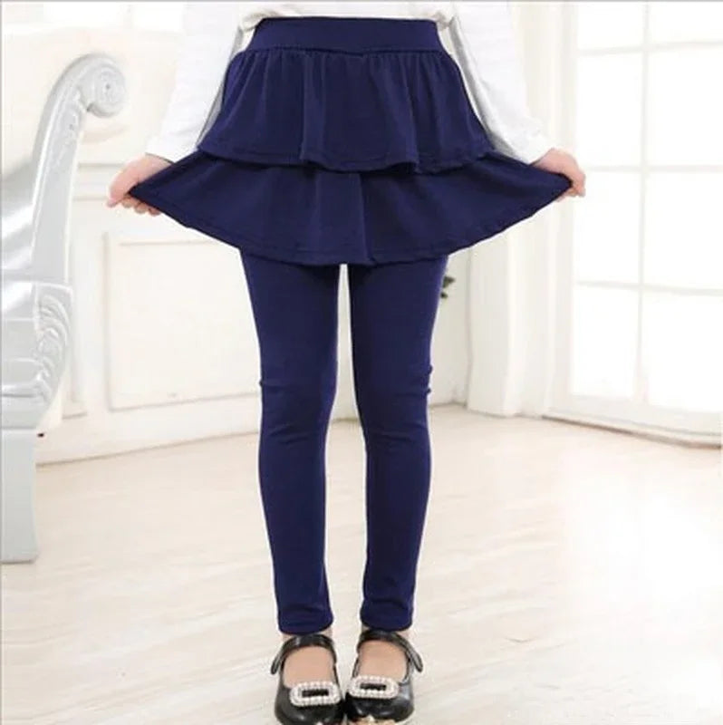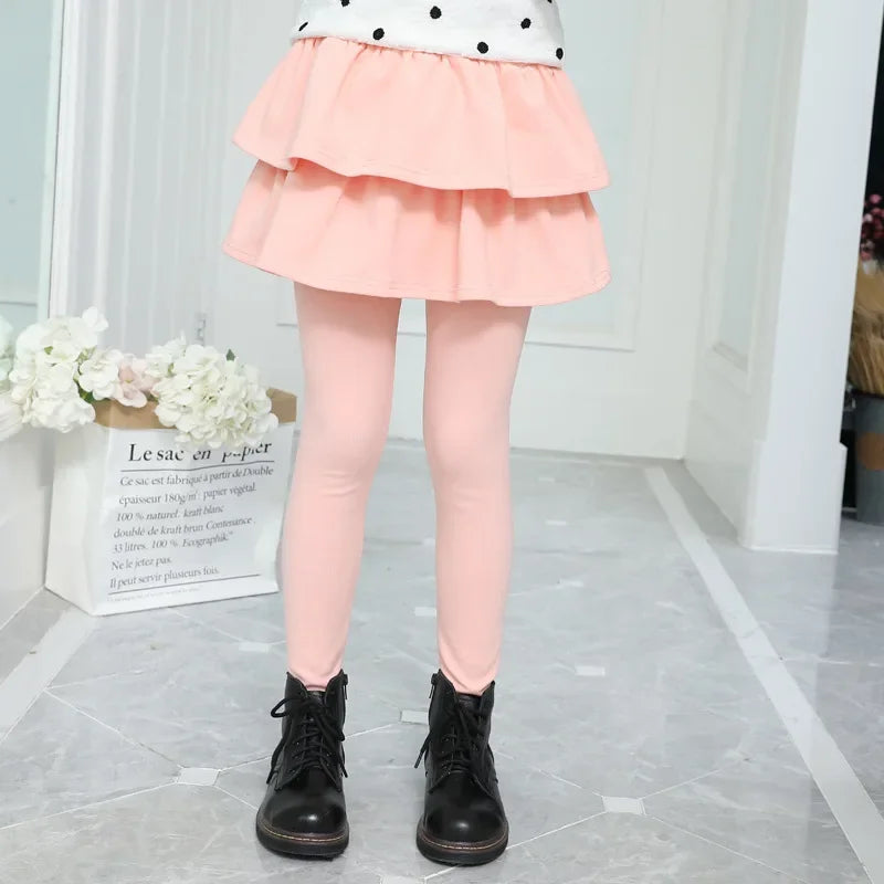 Cozy leggings with an attached layered “cake” skirt for a cute and stylish look