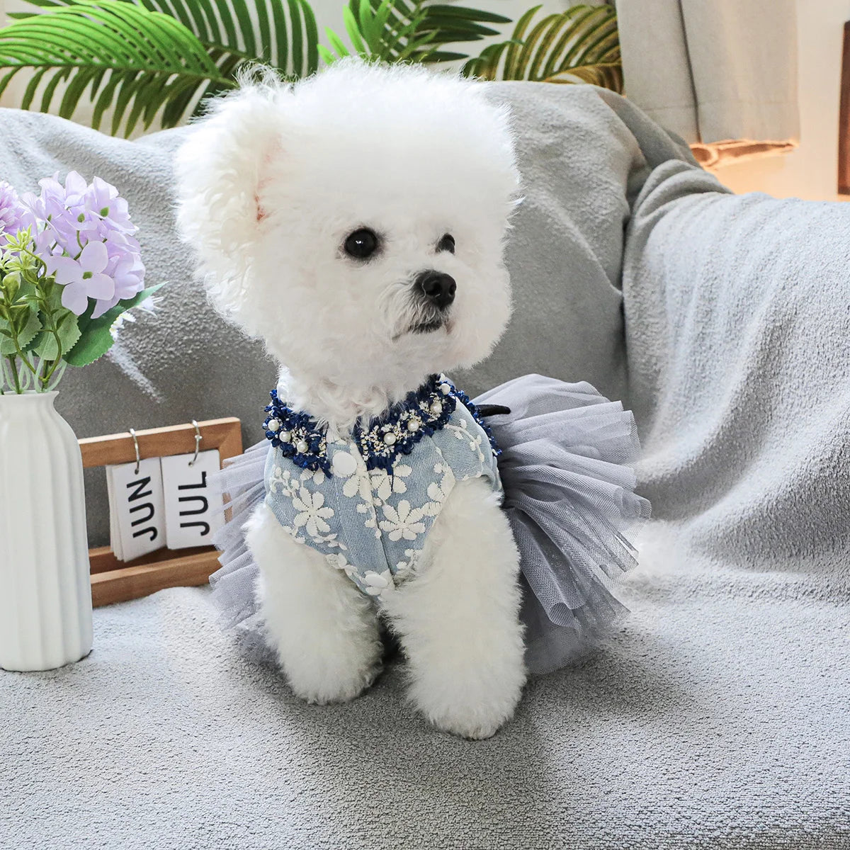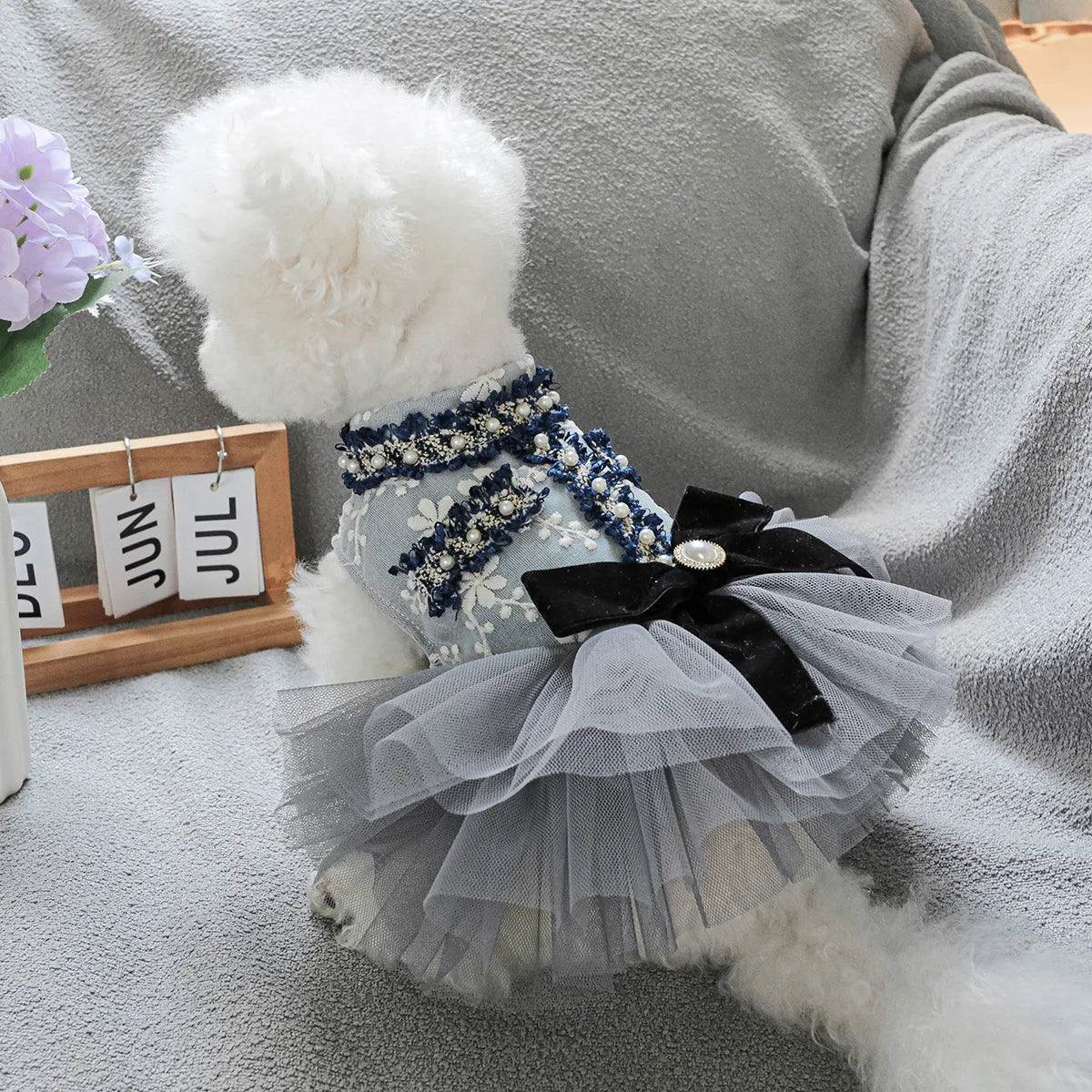 Grey Blue Princess Pet Dress – Autumn/Winter Wedding Outfit for Small & Medium Dogs