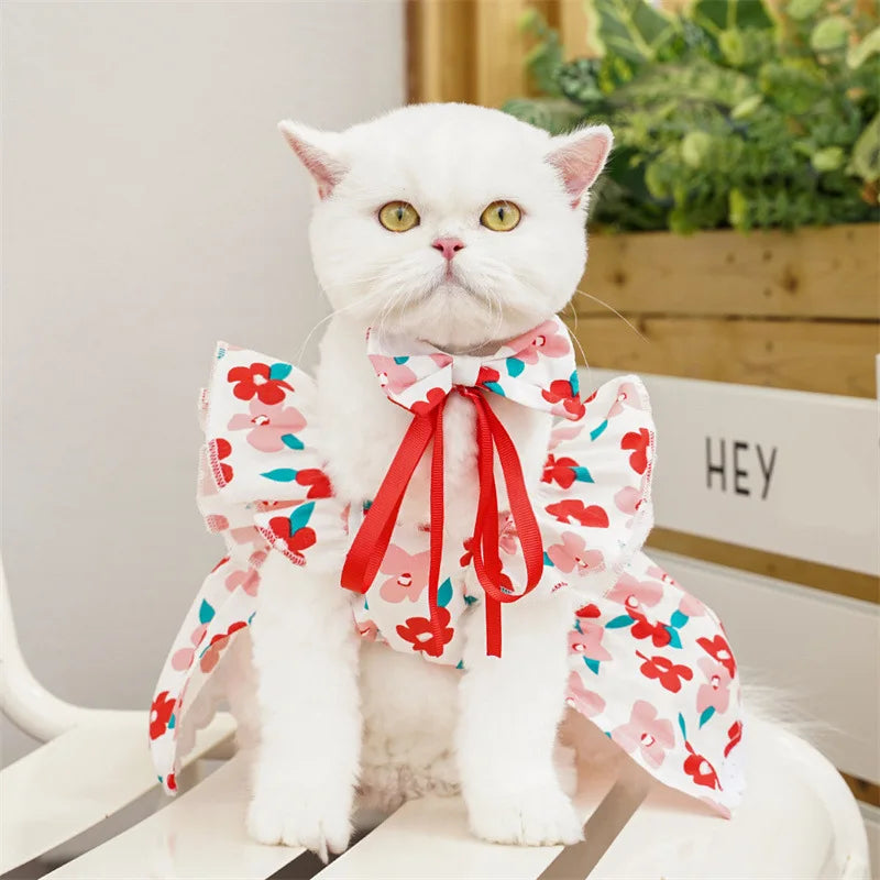 Floral Summer Dog Dress 🌸 Plaid Skirt & Bow Outfit for Small & Medium Dogs