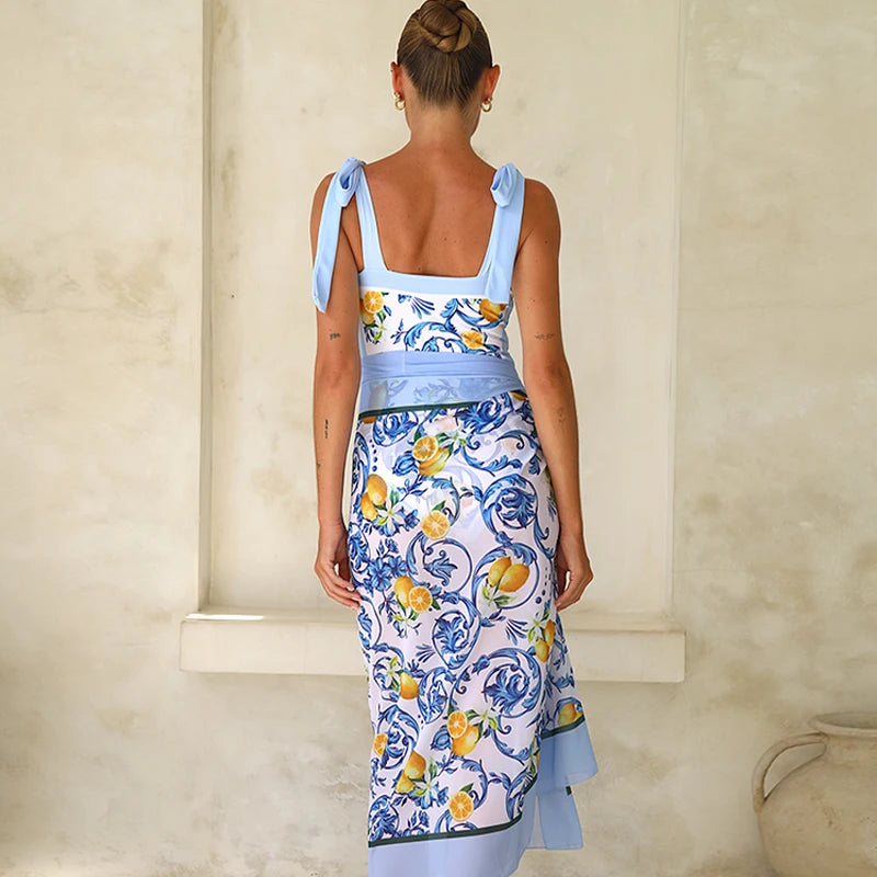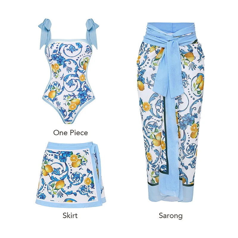 • Adorned with a fresh lemon print, perfect for tropical getaways, pool parties, or seaside photoshoots.