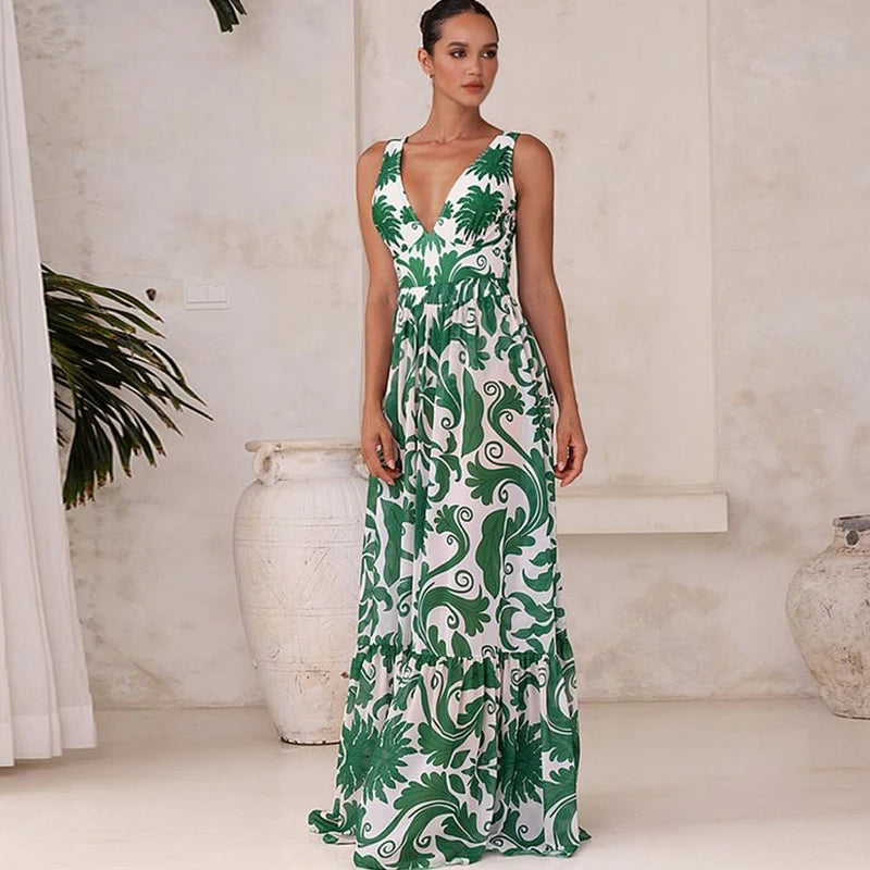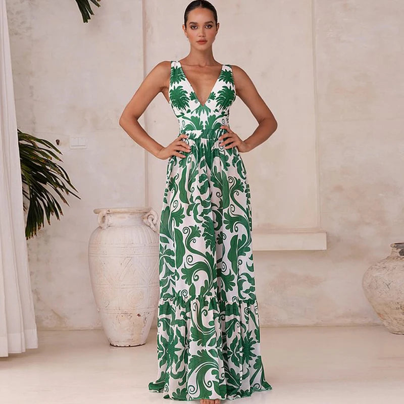 Elevate your summer look with our Flaxmaker Deep V-Neck Swimsuit & Pants Set, designed for women who love bold elegance and effortless resort style.