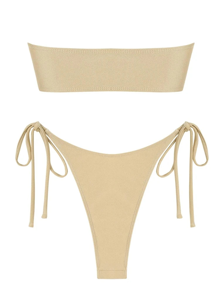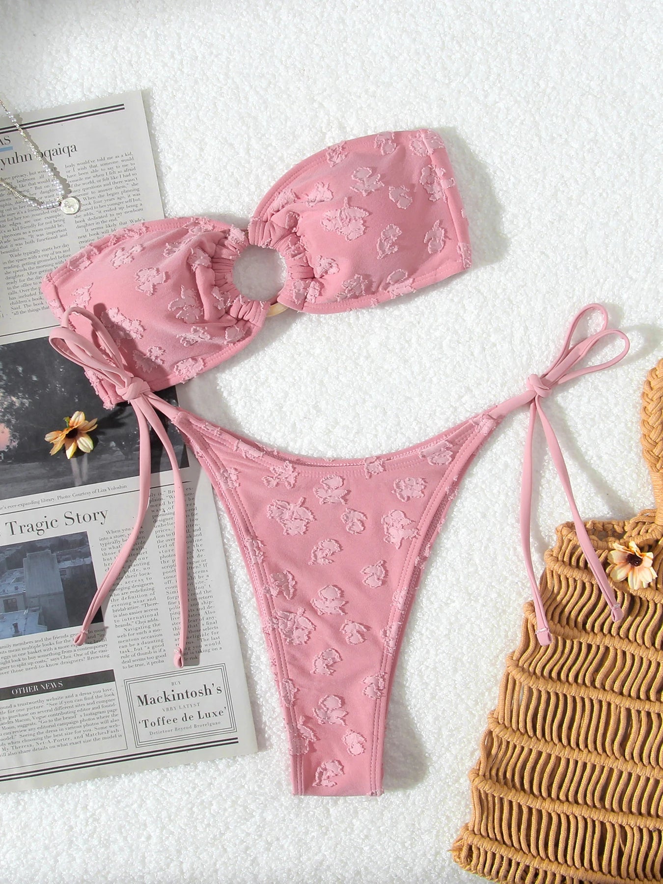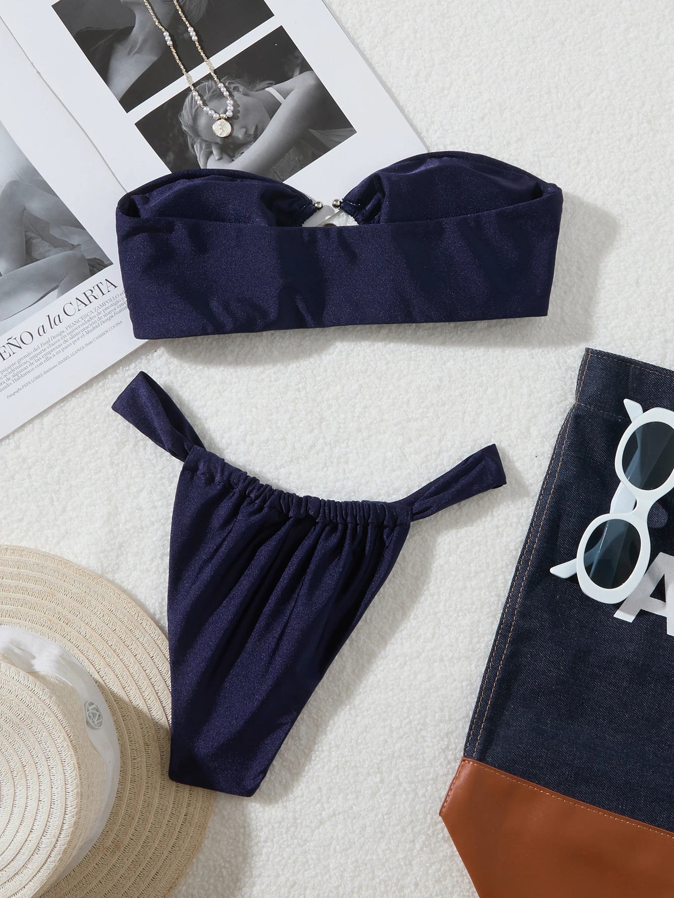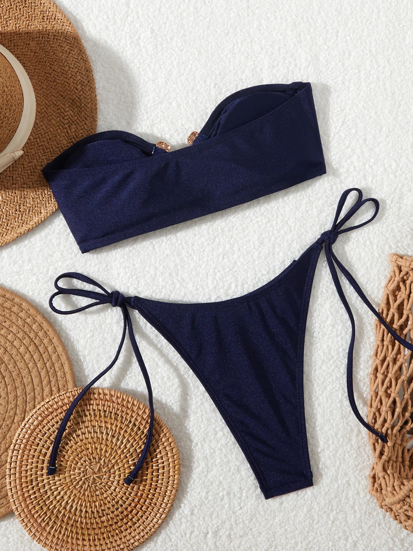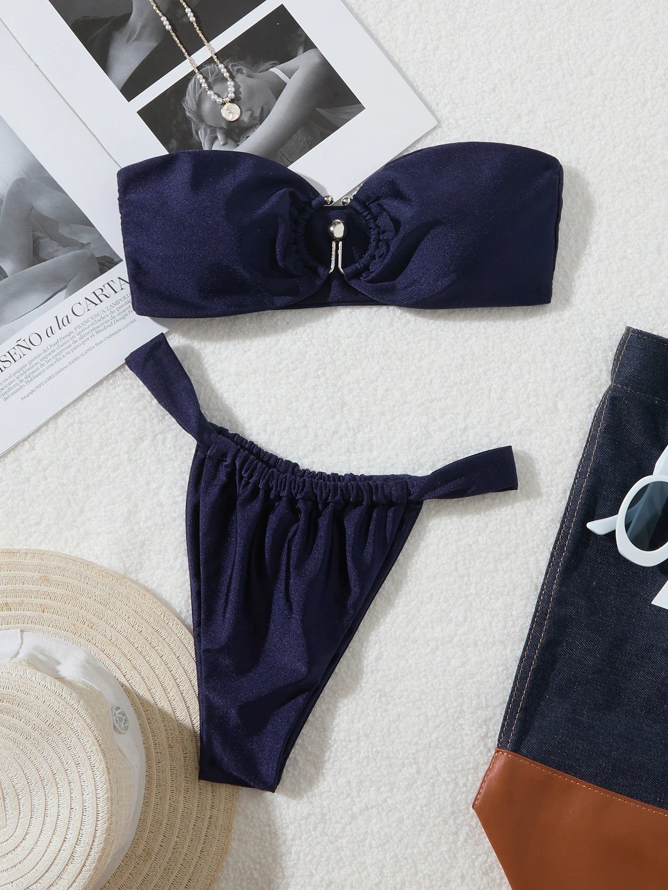 Turn every poolside moment into a runway with our Shiny Metal Ring Bandeau Bikini, designed for women who love glam, confidence, and modern beach style.