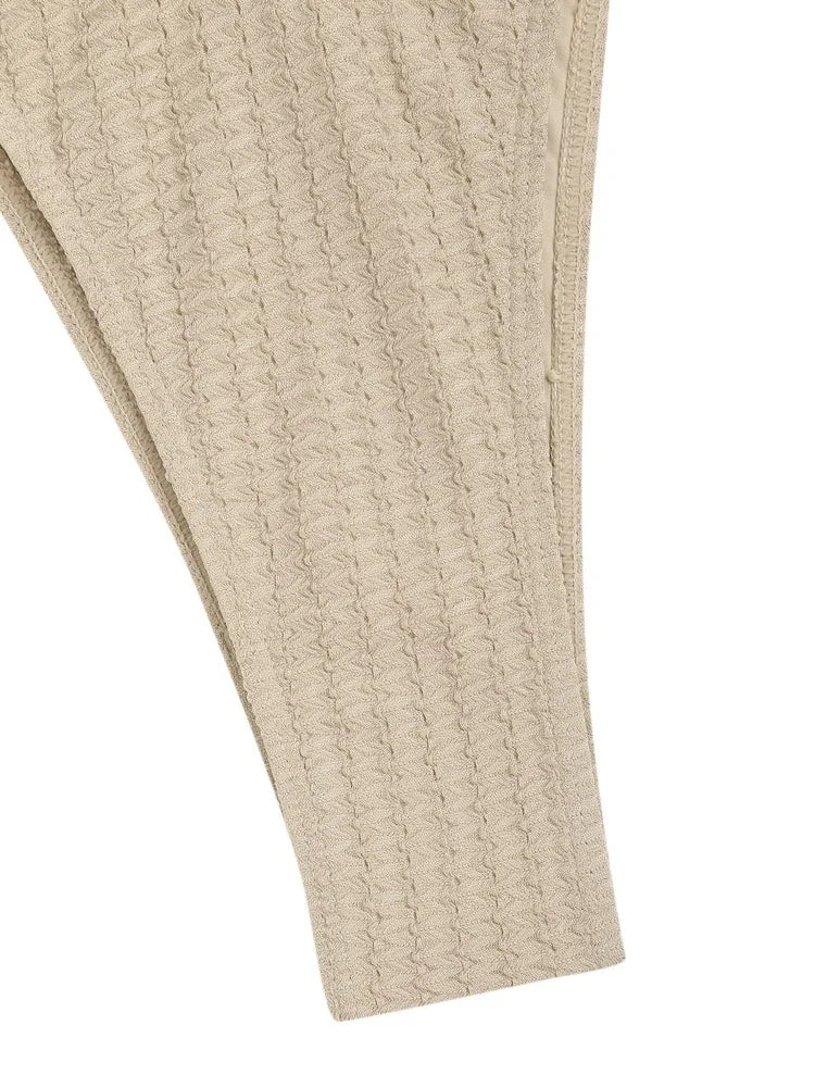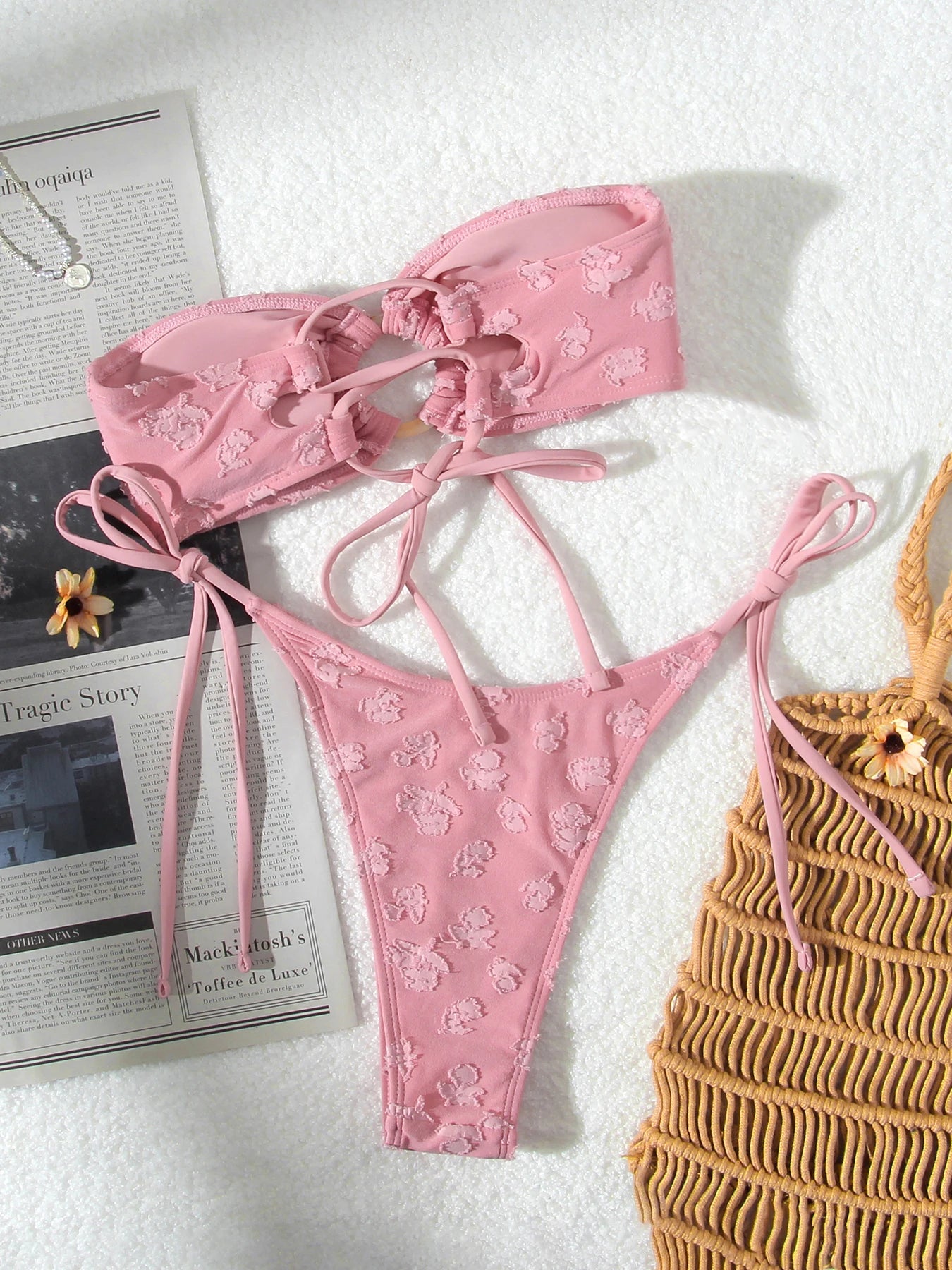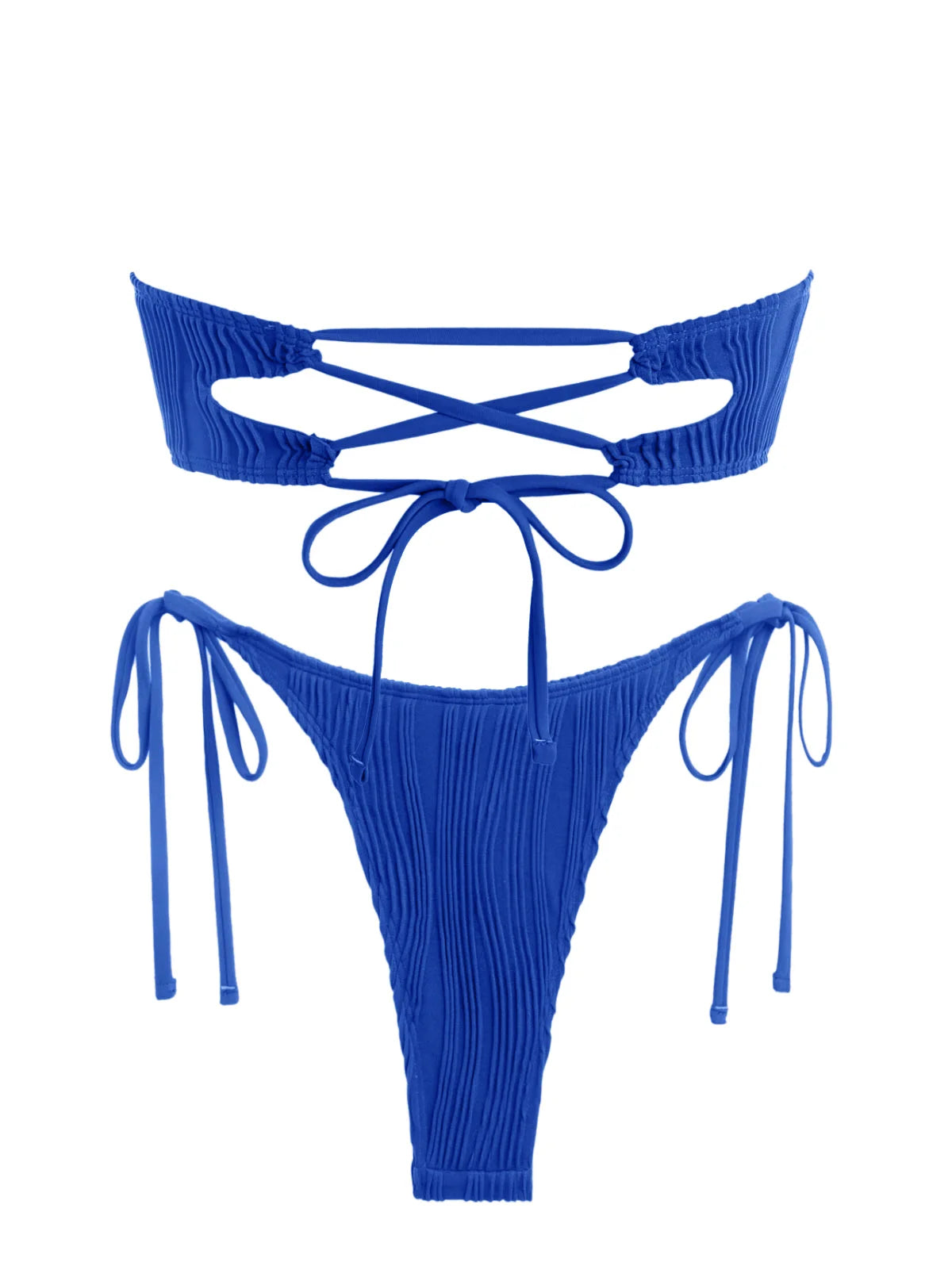 The low-waisted bikini bottoms enhance curves for a sexy, sculpted silhouette.