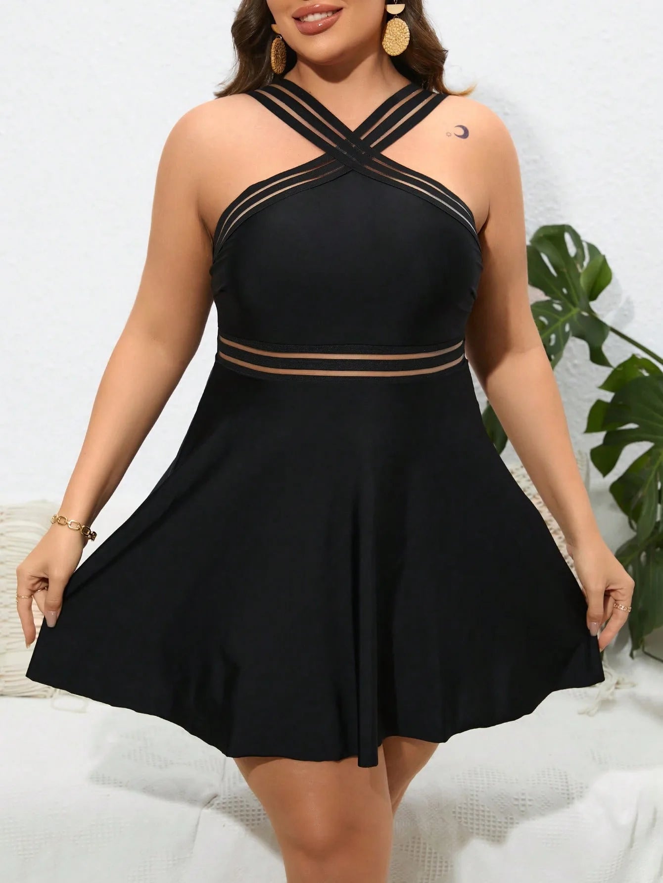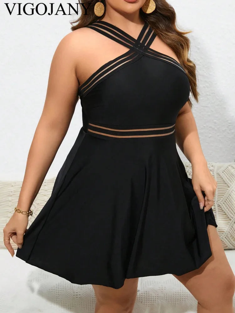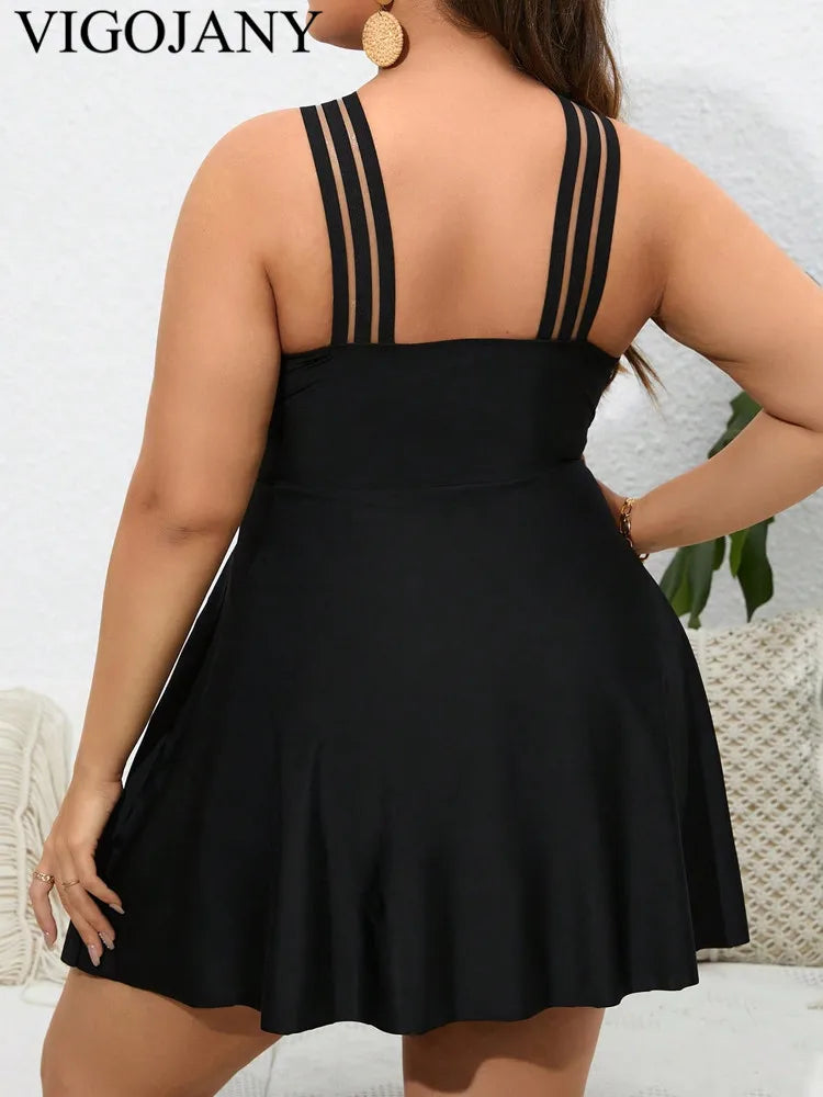 • Celebrate your curves with our VigoJany Black Cross-Strap One-Piece Swimsuit, thoughtfully designed for plus-size women who love confidence and sophistication.
