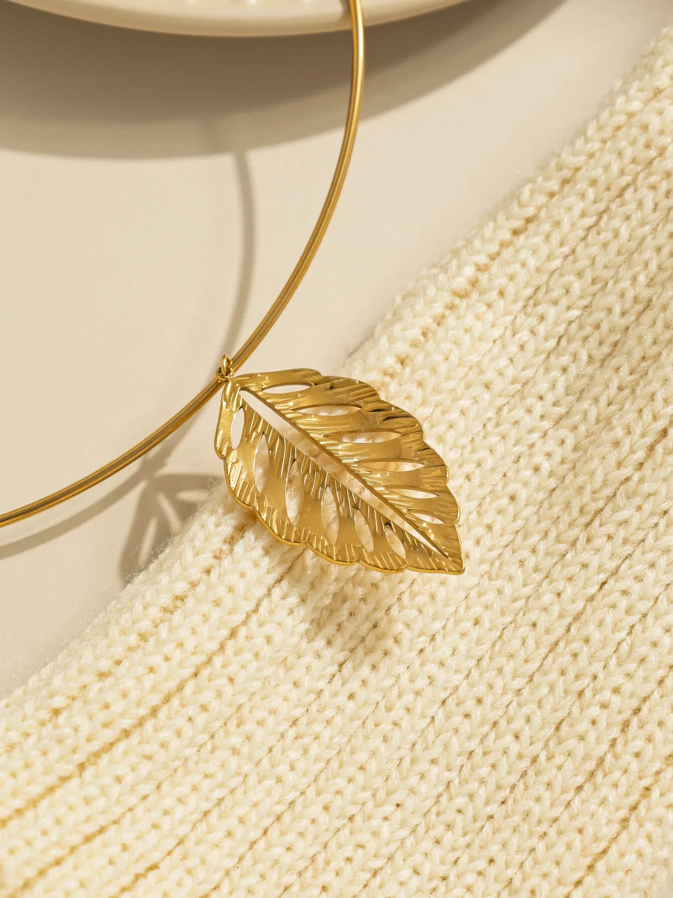 Elegant metal leaf necklace with hollow fallen leaf pendant