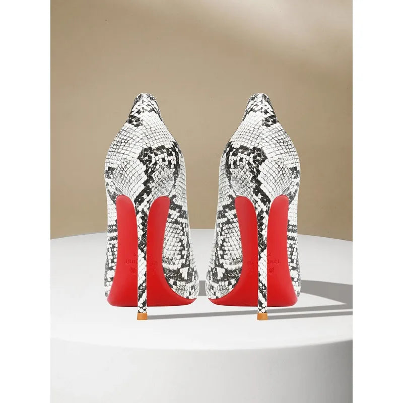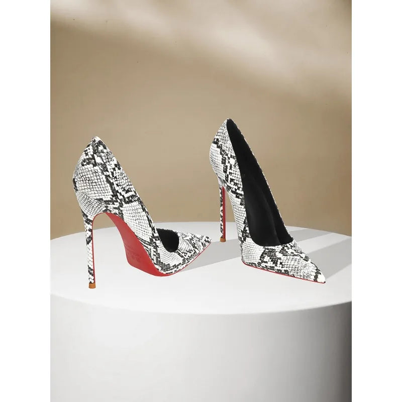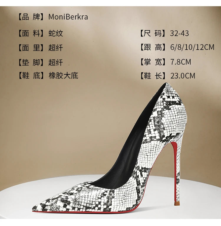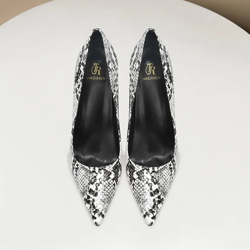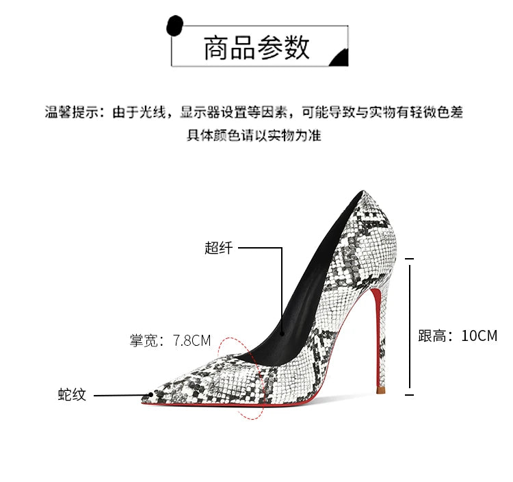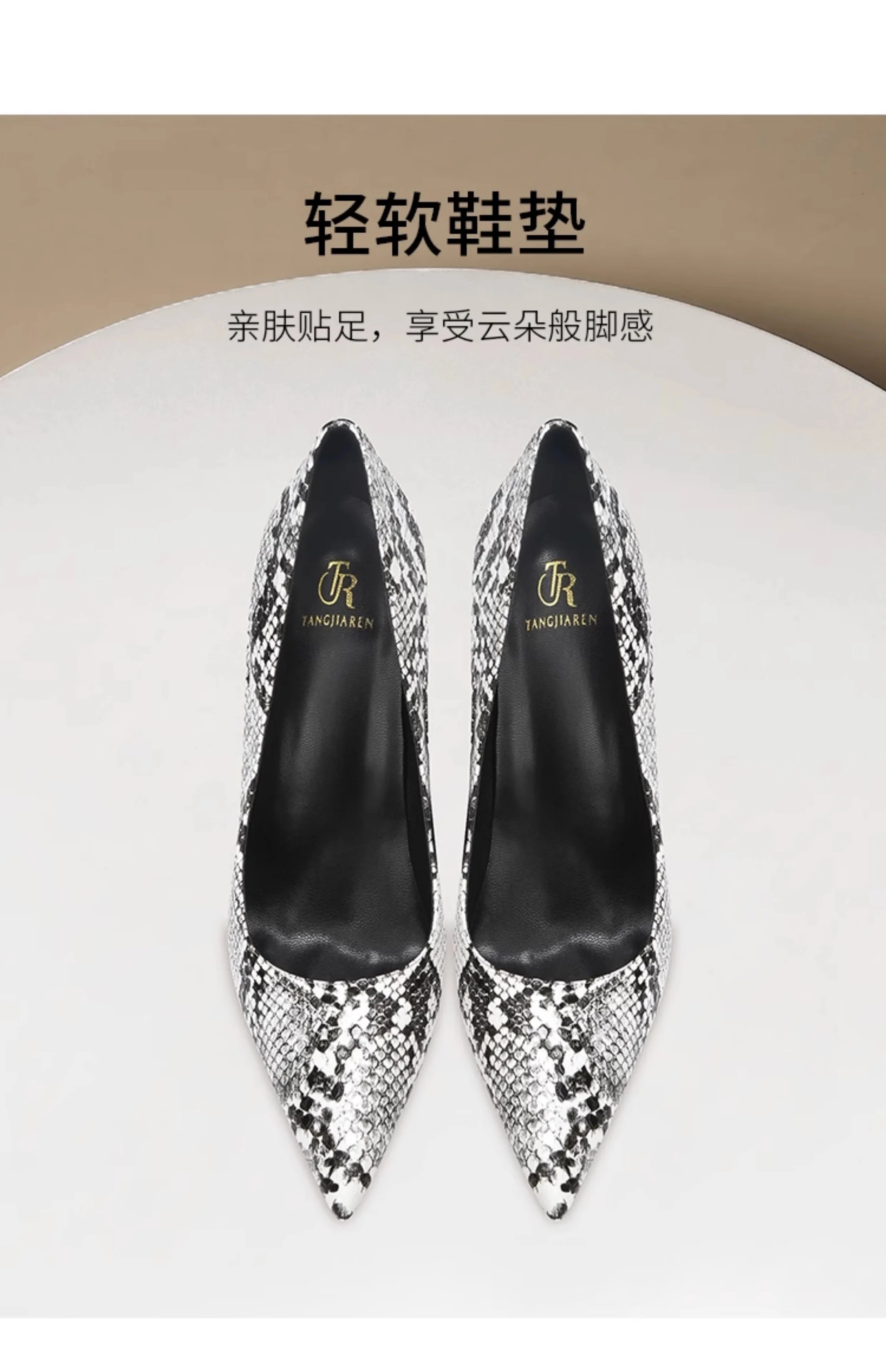 Fashionable new snake patterned high heels for women, slim heels, sexy, shallow mouth, niche temperament, pointed single shoes