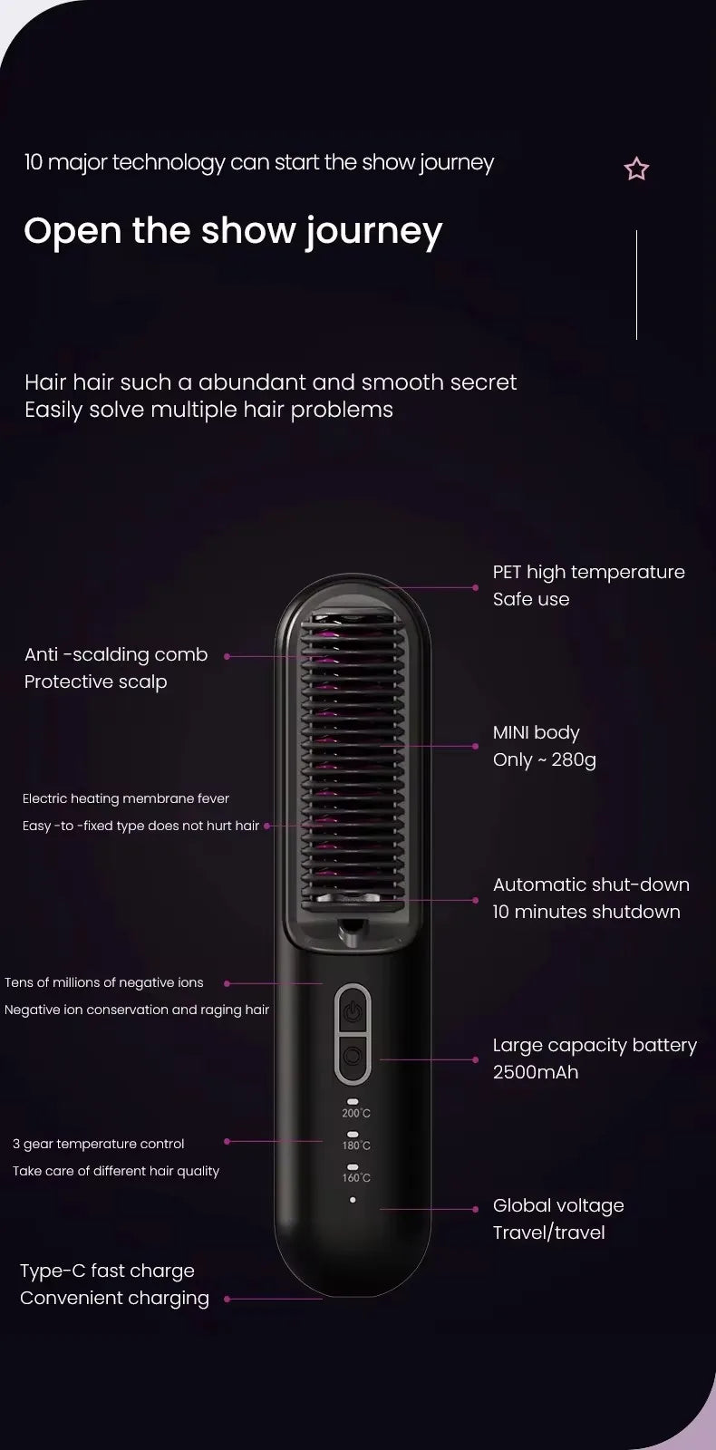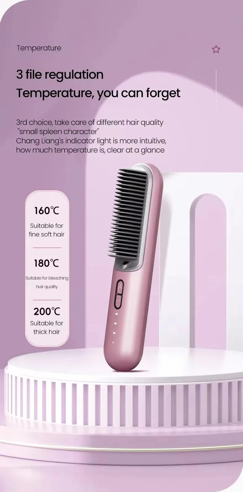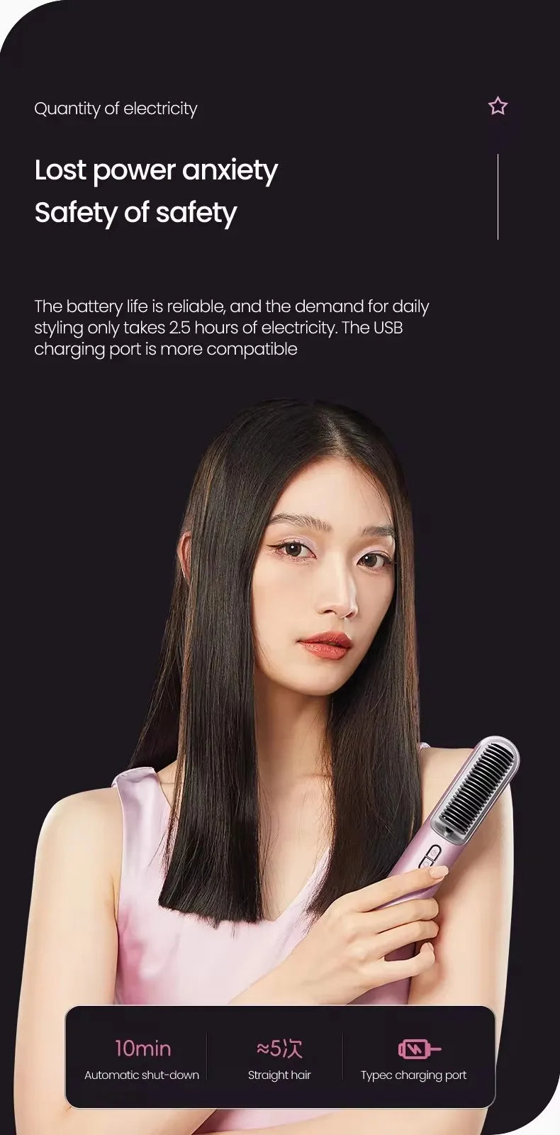 Wireless Hot Comb Straightening Brush – Negative Ion Cordless Anti-Scald Hair Styler