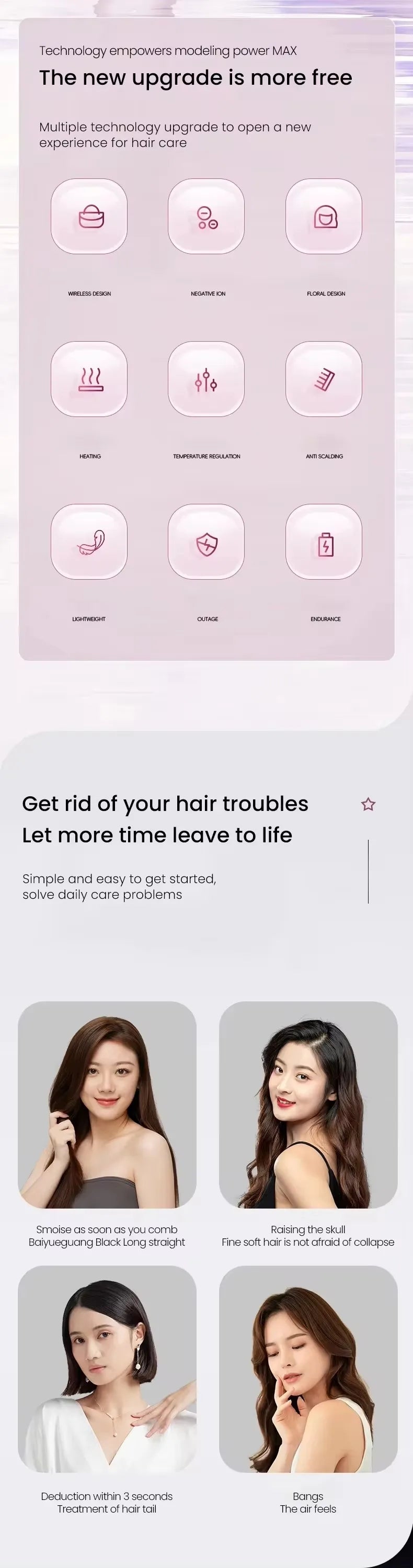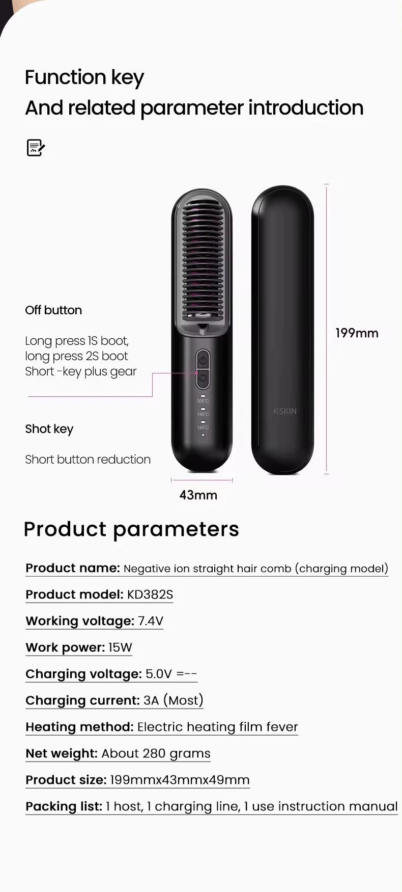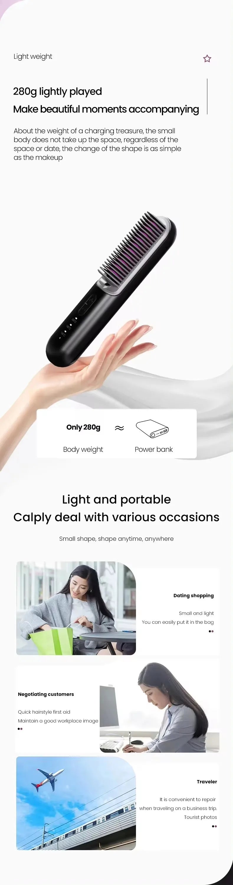 • Hot comb + straightening brush + curling iron all in one versatile tool