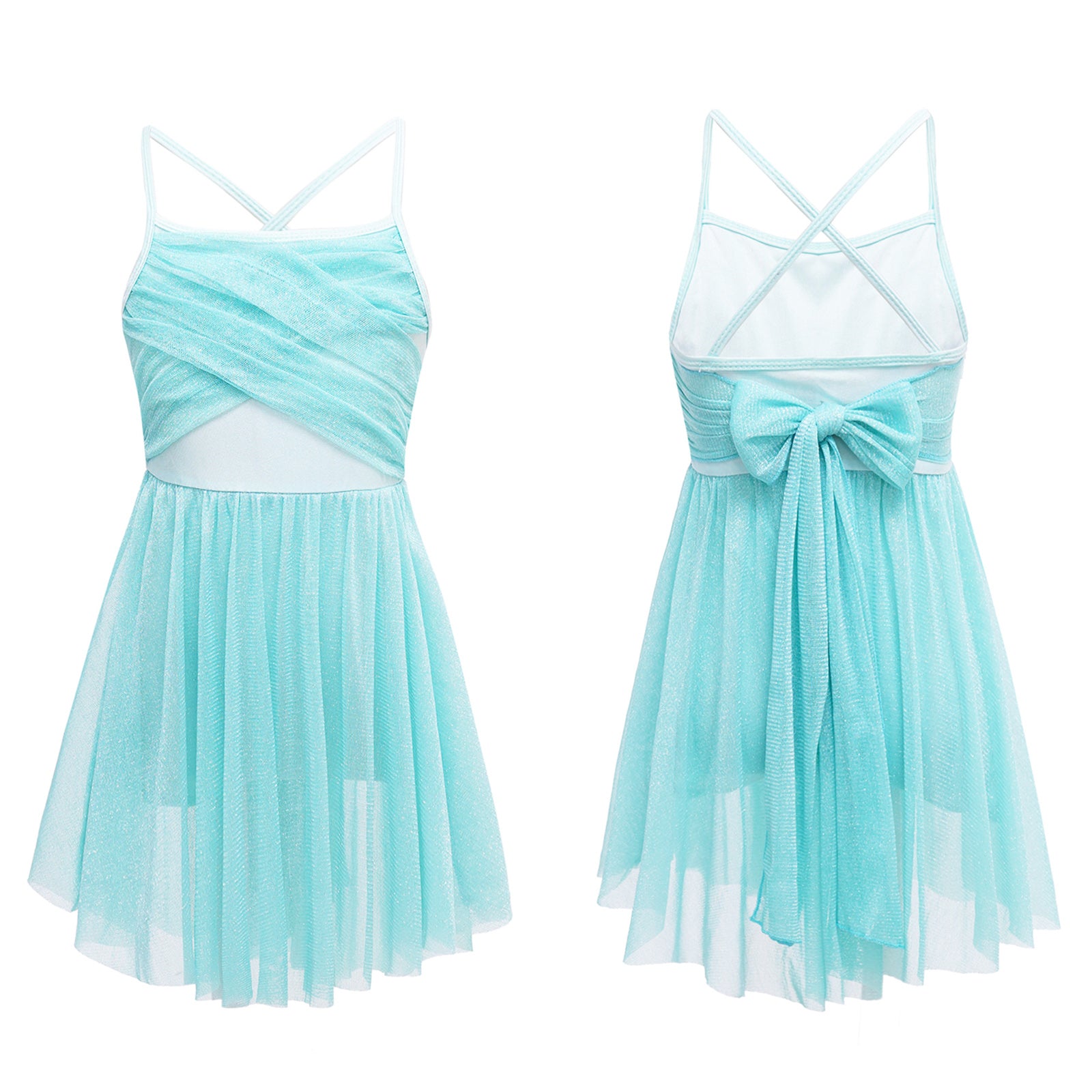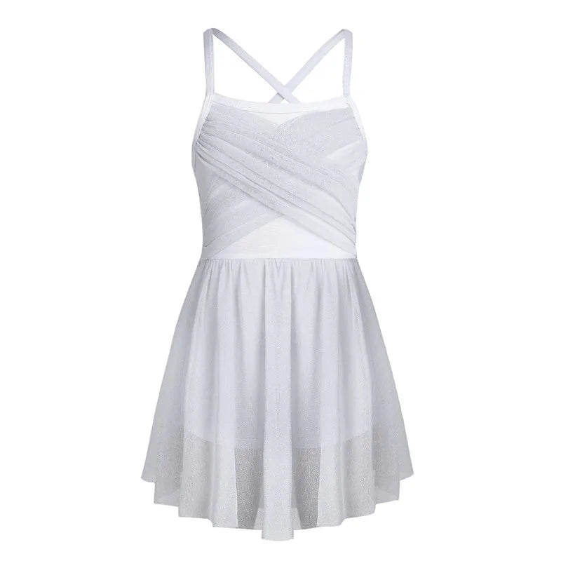 Sparkling glittery mesh dress designed for girls’ dance performances