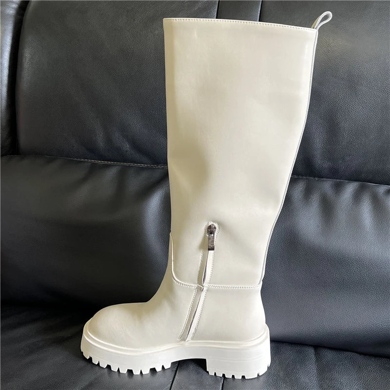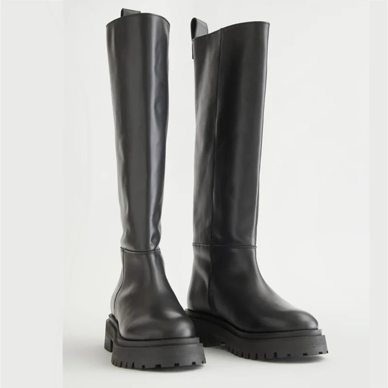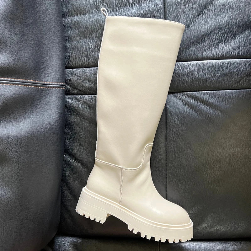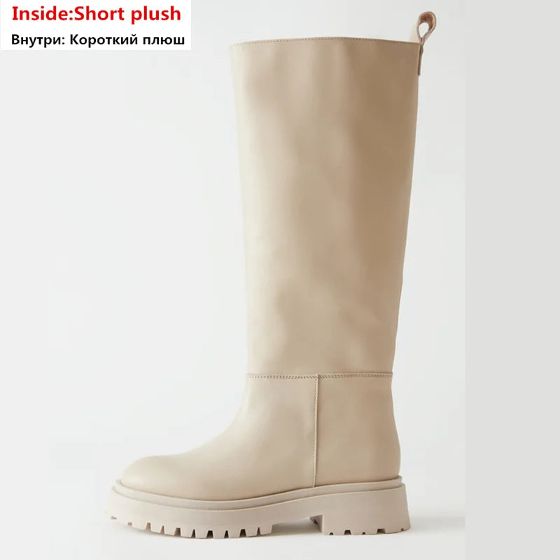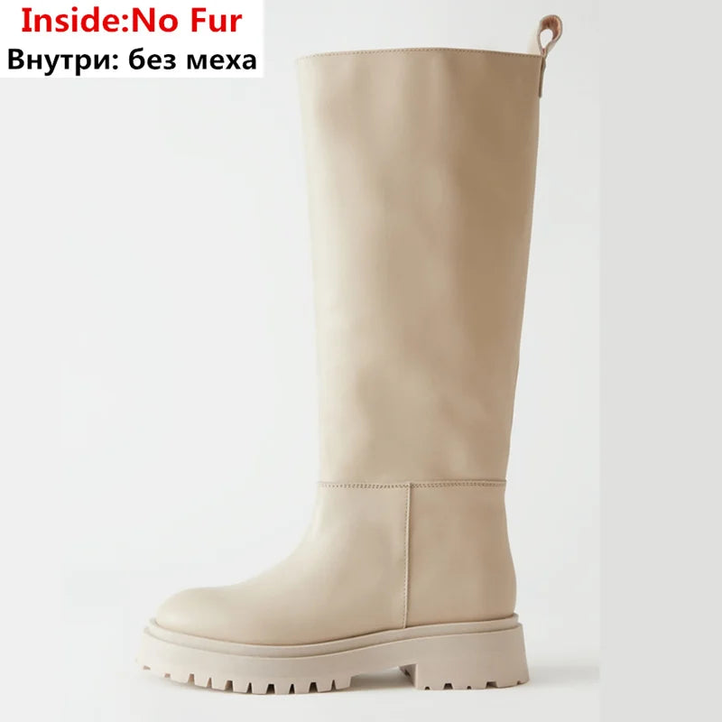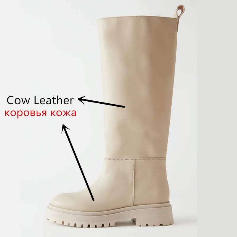 MORAZORA Plus Size 34-43 New Full Cow Leather Women Boots Slip On Chunky Platform Knee High Boots Ladies Autumn Winter Shoes