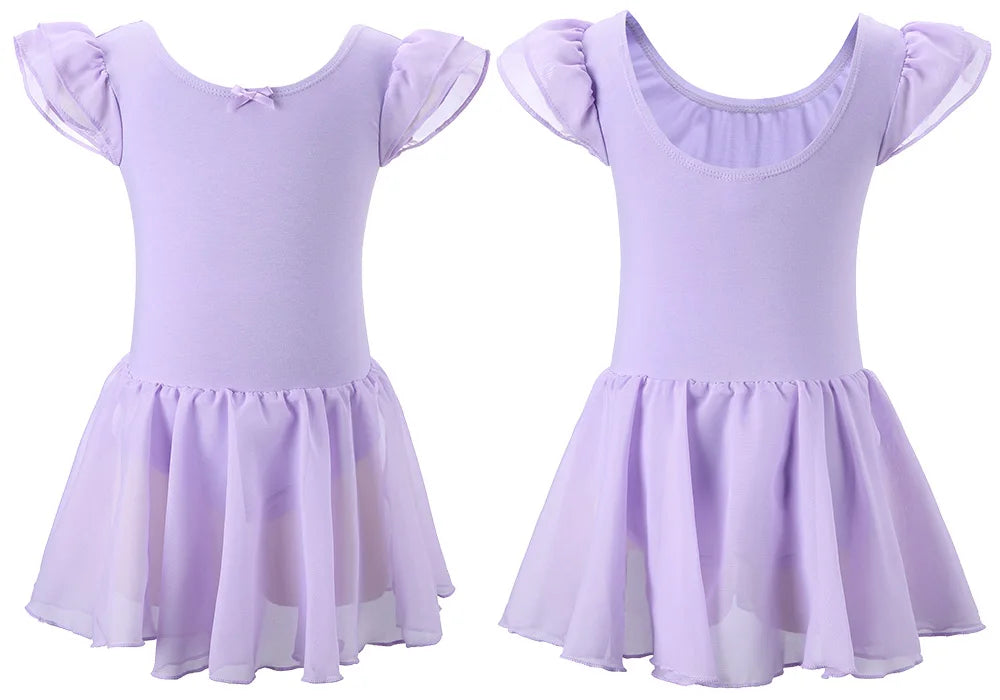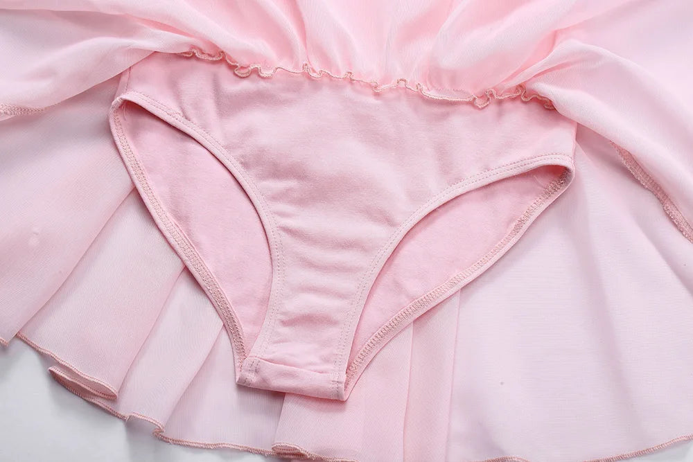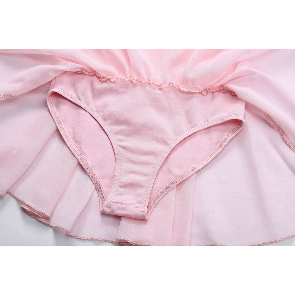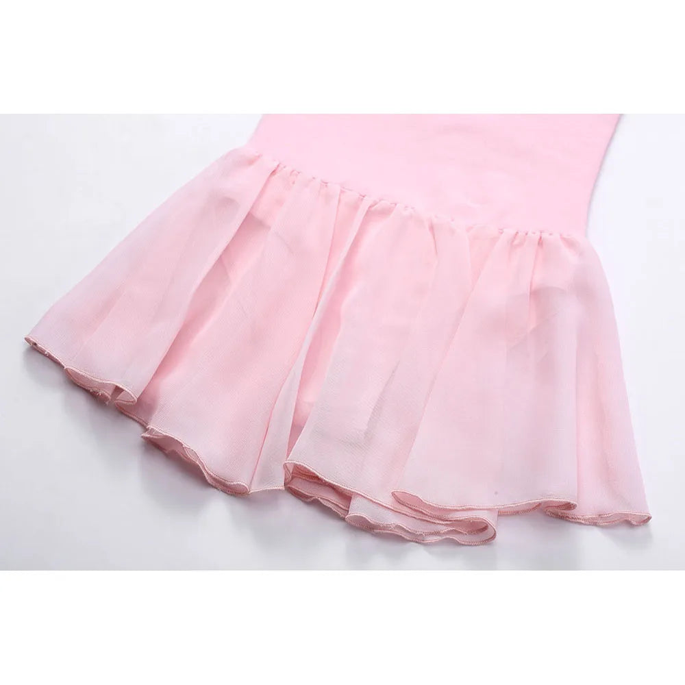• Adorable pink ballet dress with an attached tutu for a classic ballerina look