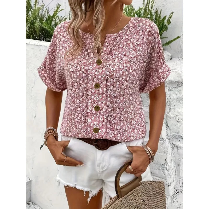 Plus-Size Women’s Floral Beach T-Shirt – Summer Short Sleeve Top