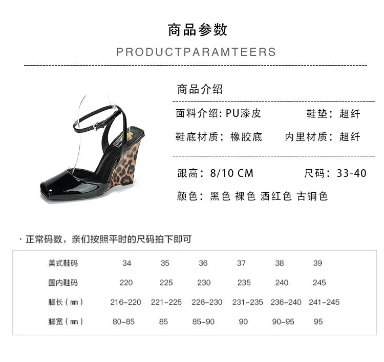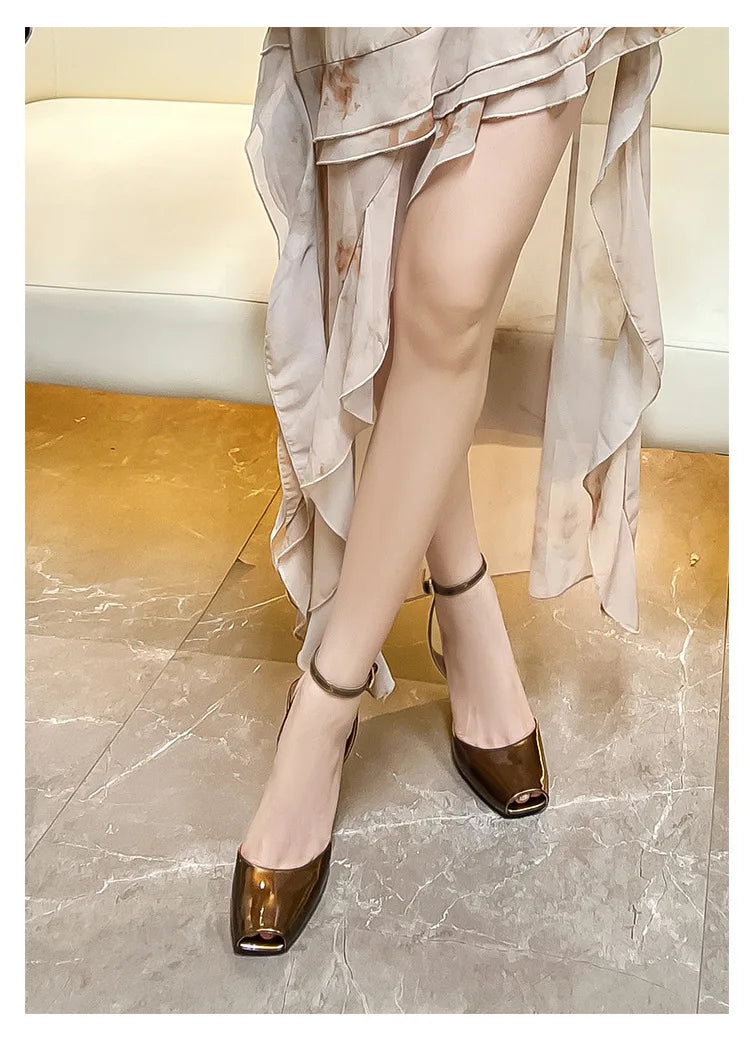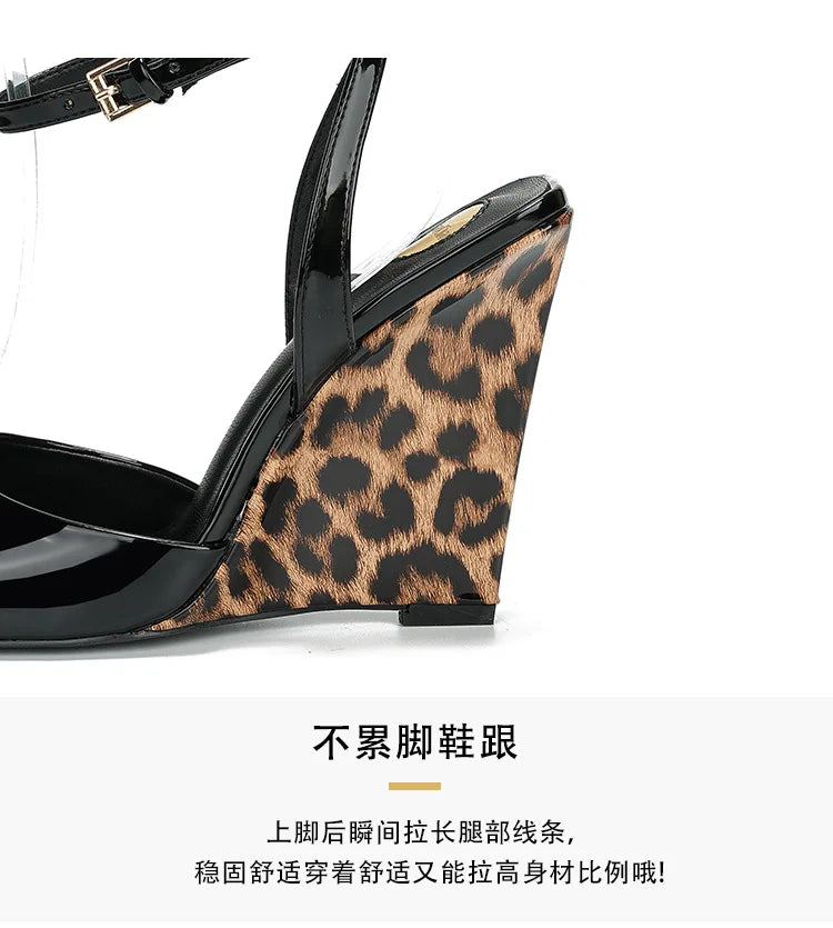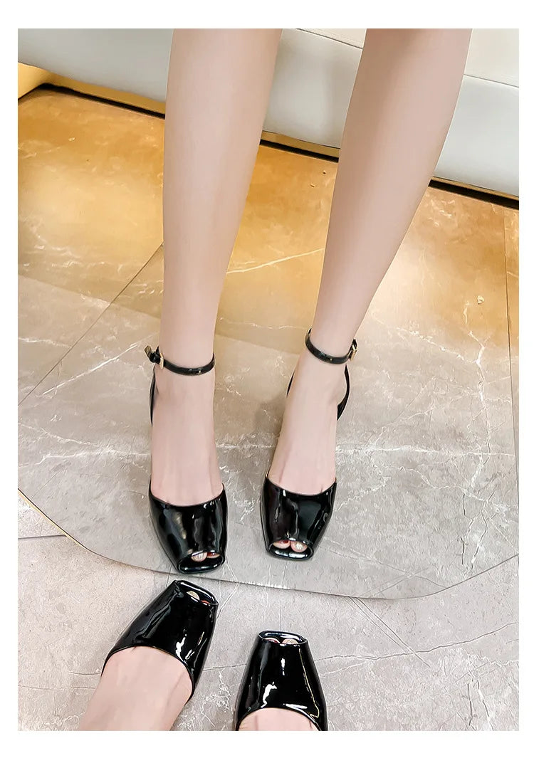 Slope heel, fish mouth, empty sandals, patent leather ankle buckle strap, stylish, sexy, shallow mouth,comfortable women's shoes