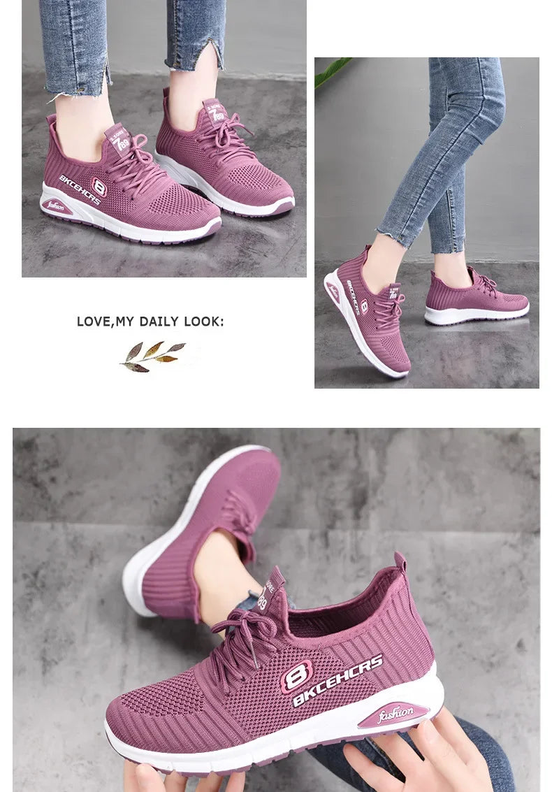 Women Casual Shoes Fashion Breathable Walking Mesh Flat Shoes Sneakers Women 2024 Gym Vulcanized Shoes Purple Female Footwear