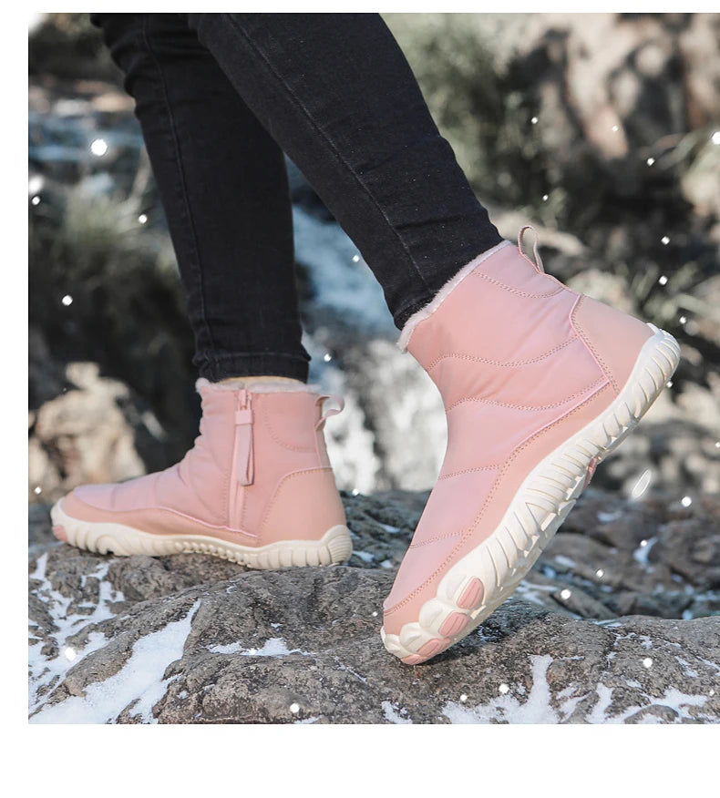 Women/Men Barefoot Snow Boots Warm Fur Shoes Non Slip Minimalist Ankle Boots Thermal Plush Shoes Comfortable for Hiking Walking